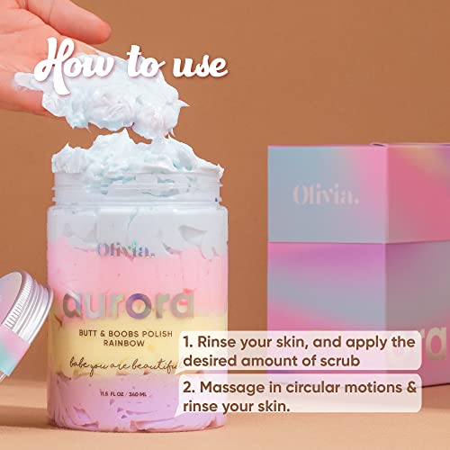 Olivia Aurora Buttocks Breasts, Body exfoliating scrub, Smooth Skin body butter for women Cellulite and Ingrown Hair for Women, body exfoliant 10 Oz