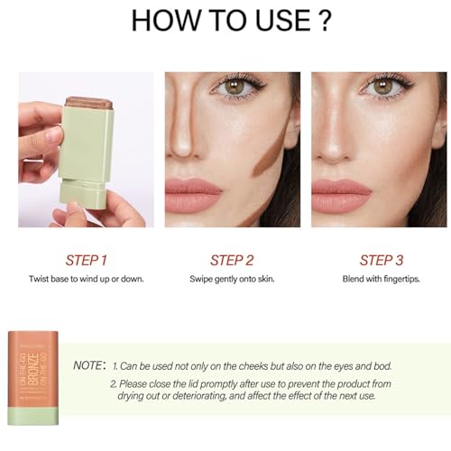 Long Lasting And Waterproof:The bronzer stick stays in the place for hours,the waterproof formula ensures it stays put without removing color,keep gorgeous color for a long time.A tiny bit goes a long way with this product,offering a natural nude makeup look for you