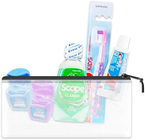 Oral Care Travel Kit for Kids- Bundle with Travel Toothbrush, 2 Floss Packs, Cavity Protection Toothpaste, Mouthwash, Travel Bag, and More for Boys, Girls, Toddlers | TSA Friendly Toothbrush Set. This travel oral care kit includes 1 toothbrush, 2 packs of floss, 1 tube of Crest cavity protection toothpaste, 1 travel size mouthwash, and 1 mini travel bag. Equipped with all the essentials for maintaining your child’s oral hygiene during vacations or overnight stays away from home. The toothbrush and toothpaste travel kit complies with TSA regulations, making it ideal for packing in your carry-on for your upcoming vacation or flight. This toothbrush, toothpaste, and floss travel kit for boys and girls also includes a Beach Kids cleaning door hanger.