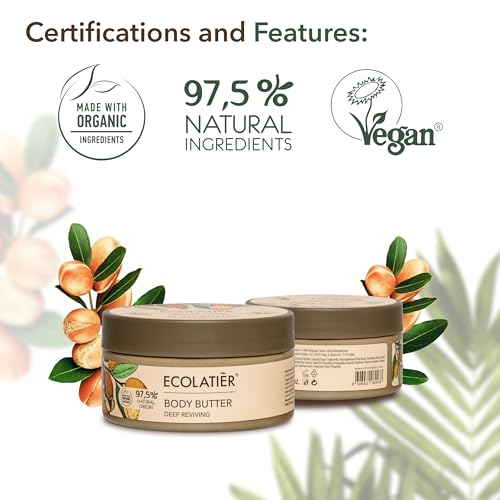 Organic Argana Body Butter for Deep Revival ECOLATIER, 200ml – 97.5% Natural, Vegan Certified – Nourishing with Argan Oil and Shea Butter for Soft, Radiant Skin – 6.8 Fl Oz