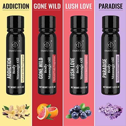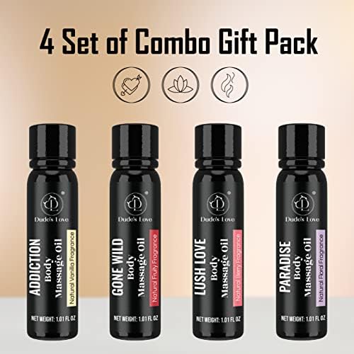 Can’t Decide? Now you don’t have to! Get 4 of our best selling Massage Oil scents Vanilla, Floral, Fruity, Berry & turn an ordinary massage into an unforgettable one! Dude’s Love massage oil is perfect for any moments.