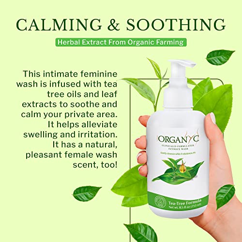 Organic Intimate Wash with Tea Tree Oils & Leaf Extracts, Gentle Cleansing Feminine Wash for Women with Sensitive Skin, Soothing pH Balance Feminine Wash, 8.5 fl oz, Pack of 2