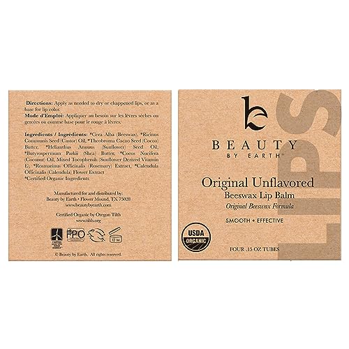 Organic Lip Balm – 4 Pack Unflavored Organic Gifts for Women, All Natural Lip Balm, Birthday Gifts for Her & Him, Lip Balm Hydrating Beauty Gifts, Lip Moisturizer, Mens Gift Ideas