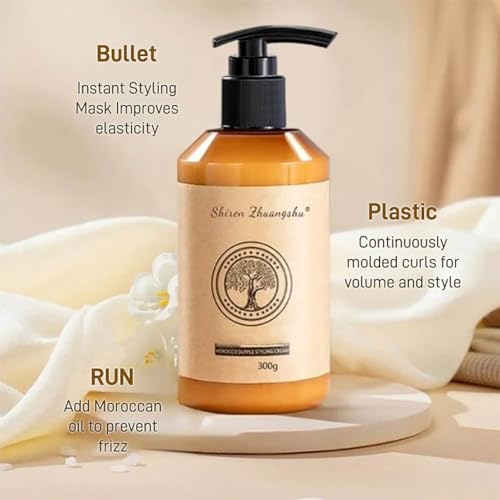[Original and Genuine] Long-lasting Styling Moroccan Volume Moisturizing Elasticity, 300g Hydrating Styling Cream Moisture Styling Elastin Conditioner for Curly Hair (1 Bottle)