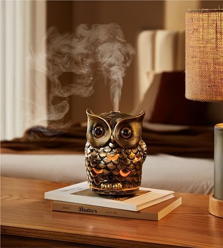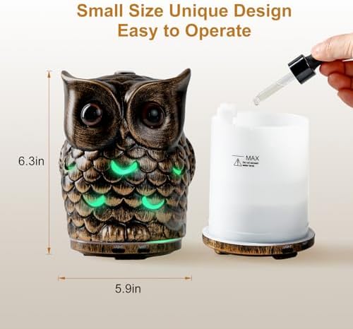 Owl Essential Oils Diffuser, Ceramic Hand-Painted Diffuser, 200ML Quiet with Waterless Shut-Off Protection, Cool Mist with 7 Colors LED Lights 2 Mist Mode for Bedroom Home, Office, Brown