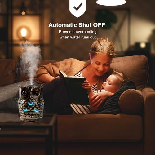 SIMPLE TO USE: The diffuser has two modes, continuous mist and intermittent mist. Press the button on the right to start the continuous essential oil cooling mist, and press the button again to start the intermittent mist mode. The owl will be suspended for 30 seconds after 30 seconds of mist, and the diffuser with waterless automatic off.