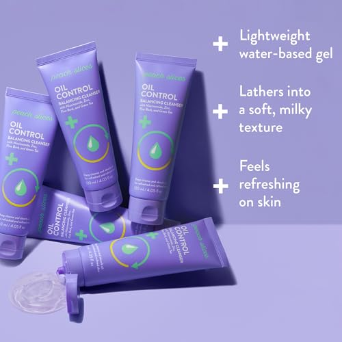 Peach Slices Oil Control Balancing Cleanser leverages breakthrough shine-blocking technology to absorb oil and deeply cleanse, without stripping skin dry.