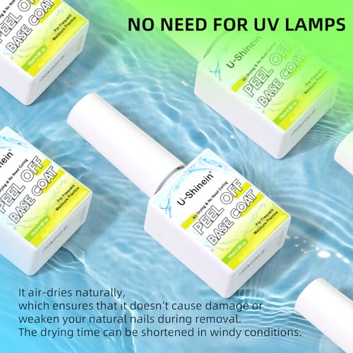 NO UV LAMP & NAIL-FRIENDLY: Unlike traditional peel-off base coats, our formula does not require UV lamps. It air-dries naturally. Thin coats dry in 5 minutes, while thicker coats may take 10-20 minutes. The drying time can be shortened in windy conditions. Rest assured that our base coat doesn’t cause damage or weaken your natural nails during removal, providing a truly damage-free experience.