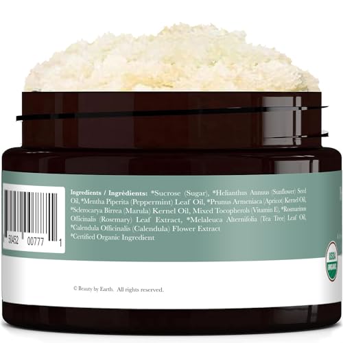 Peppermint Tea Tree Organic Body Scrub – USA Made Sugar Scrub with Natural Ingredients, Moisturizing Body & Foot Exfoliator for Dry and Sensitive Skin, Removes Dead Skin Cells & Reduces Ingrown Hair