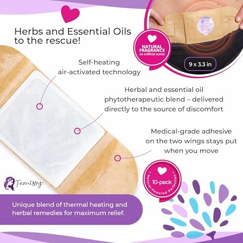 Period Heating Patches for Heavy Flow, 10 Period Patches for Menstrual Cramps Based on Flow Strength with Natural Herbs & Oils; Disposable Stick On Heat Patches for Cramp Free Period