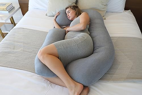 Pharmedoc Pregnancy Pillows, U-Shape Full Body Pillow – Cooling Cover Dark Grey – Pregnancy Pillows for Sleeping – Body Pillows for Adults, Maternity Pillow and Pregnancy Must Haves