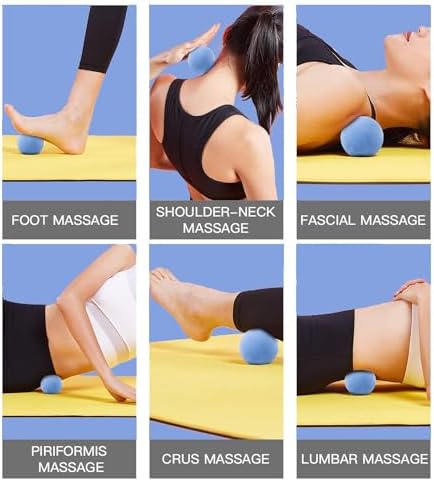 Yoga massage ball set: Set of excellent therapy balls for self myofascial release and trigger point massage therapy. The balls are made specifically for massage therapy and are ideal for physical therapy equipment. They are similar in size to lacrosse balls and can can be used for pinched nerve lower back pain, herniated disc pain relief, and pinched nerve neck pain.