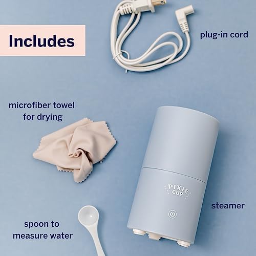 Pixie Menstrual Cup & Disc Steamer Sterilizer 2.0 – Kills 99.9% of Germs with Cleaner Steam – Wash Your Period Cup in 3 Minutes! – The Most Asked for Sensor On-Off Button & Must Have Cylinder Shape