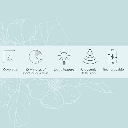 RECHARGABLE POWER: Charge this diffuser with the included USB power cord. Once charged, this portable diffuser lasts up to eight hours. A green indicator light will turn on when power is low or when charging.