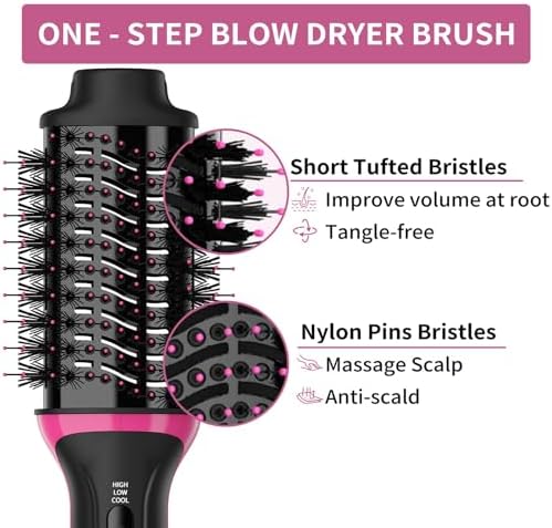 【Stunning Blowout Results】The distinctive oval-shaped barrel boasts 360° airflow and titanium plates for effective smoothing, while its rounded edges facilitate volume creation and hair shaping. Engineered with Nylon Pin & Tufted Bristles, it effectively prevents hair tangling, enhances volume, and augments shine.
