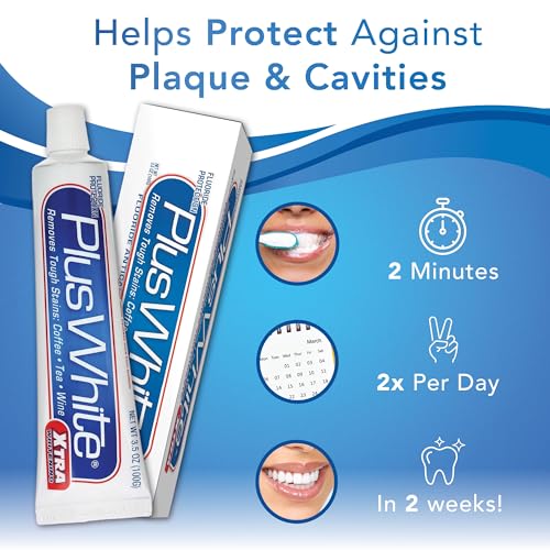 [ Removes Tough Stains from Coffee, Smoking, Wine & More ] – Our double action stain fighting toothpaste, uses powerful ingredients to fade away tough stains on teeth, leaving them clean, white and bright. Say goodbye to yellow teeth and discoloration from everyday things like coffee, tobacco, wine, tea and more. Your teeth will look shades whiter and brighter with Plus White Xtra Whitening Toothpaste