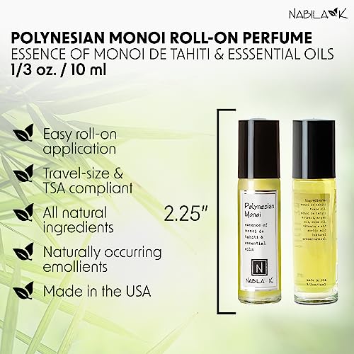 Polynesian Monoi – Roll-On Perfume with Essential Oils – All Natural – Organic – Long-Lasting Fragrance – Alcohol-Free – Perfume for Women – TSA Approved – 0.33 oz / 10 ml