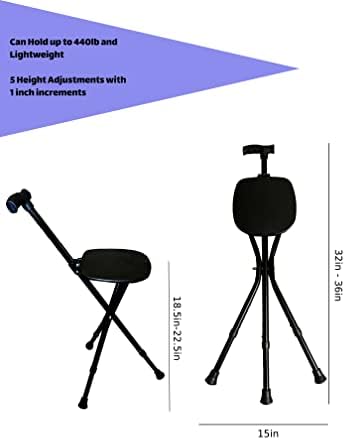 Portable Adjustable Folding Walking Walking Stick, Walking Cane, Cane Chair, Quad Cane and Folding Cane with Seat is 36 Inches Tall, FSA HSA Eligible, and Supports up to 440 Pounds