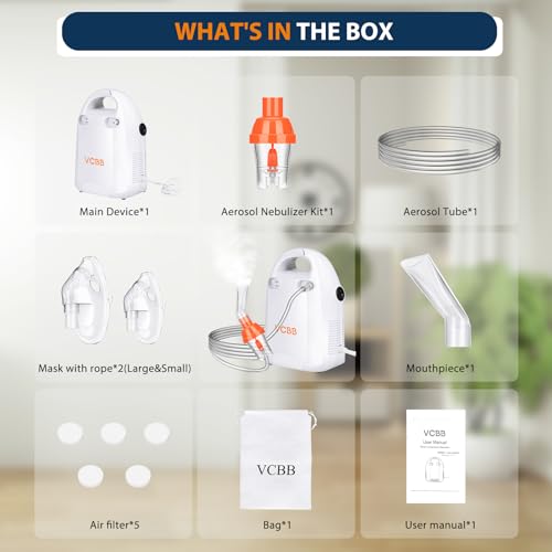 Portable Compressor Nebulizer Machine for Kids and Adults, Pro Compact Cool Mist System for Home Use with Nebulizer Mask Mouthpiece, Friendly for Breathing Problem