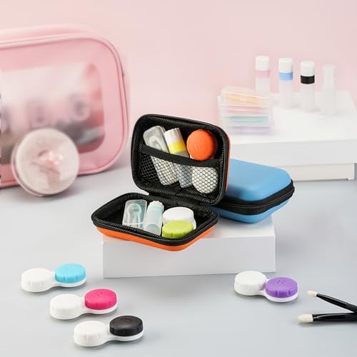 HIGH QUALITY MATERIAL: All contact lens cases are made of high quality plastic; the contact for eyes storage box has a durable material outer layer and soft scratch-resistant inner layer, and an inner mesh half pocket for accessories, which increases the storage space; secure zipper closure and smooth, excellent dust protection