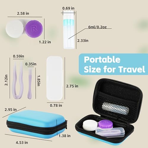 Portable Contact Lens Travel Bag with Contact Lens Case Tweezers Remover Tool Solution Bottle for Daily Outdoor(Blue)
