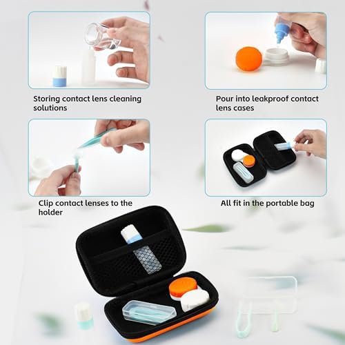 Portable Contact Lens Travel Bag with Contact Lens Case Tweezers Remover Tool Solution Bottle for Daily Outdoor(Orange)