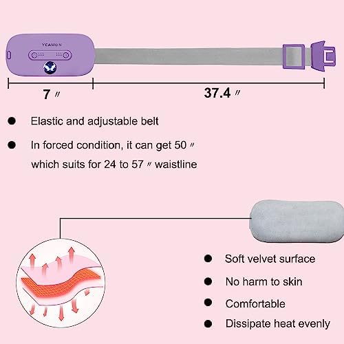 Portable Cordless Heating Pad, Electric Waist Belt Device,Fast Heating Pad with 3 Heat Levels and 3 Vibration Massage Modes, Back or Belly Heating Pad for Women and Girl(Light Purple)