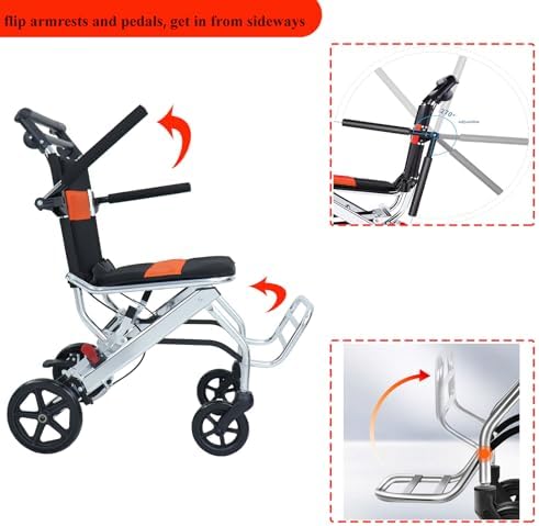 Portable Folding Wheelchair, Travel Wheelchair with handbrake, Ultra-Light Wheelchair for The Elderly and Children (with Bag)…