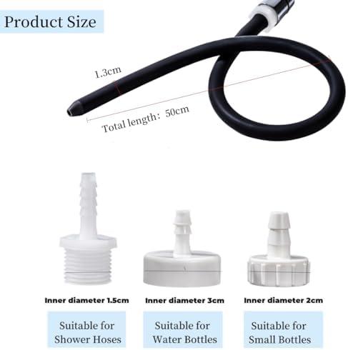 -Confirm the size of the bottle and shower tube: Before purchasing the product, please confirm the size of the bottle and shower tube. The product includes three types of connectors, which are suitable for different sizes of bottles and shower hoses.