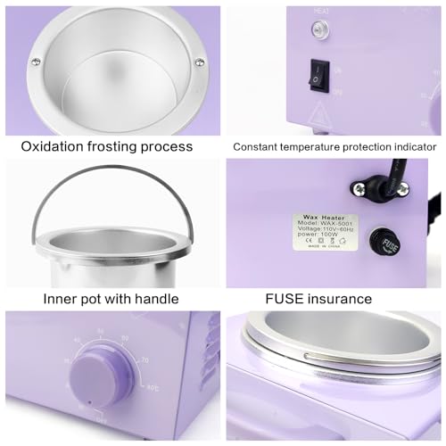 Portable Wax Warmer Machine for Painless Hair Removal, Women Men Professional Wax Heater with Adjustable Temperature Set, 20pcs Wax Sticks (Purple- Single Pot)
