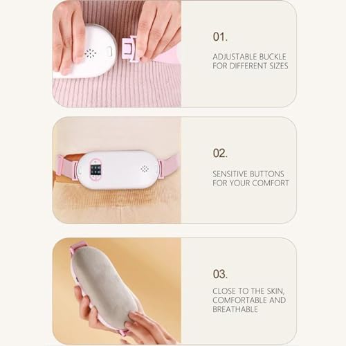 Portable Wireless Menstrual Heating Pad, 3-Speed Vibration & Heat Level, Fast Heating Pad with Storage Bag, Waist Belt Device Portable Electric Fast Heating Belly Wrap Belt for Women