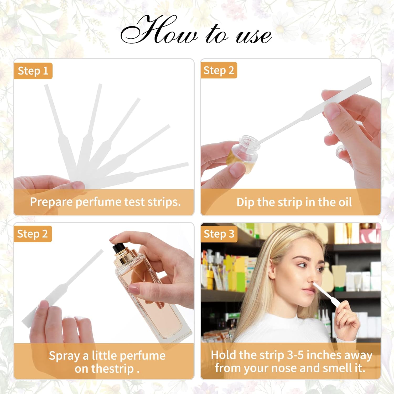 Easy to Use: Test strips for perfume are easy for you to use, you just need to dip the narrower part in the bottle or spray perfume to the surface and wait for several seconds, you will know the scent. You can write down the smell name on the wide part.