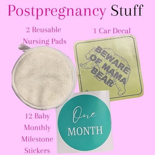 1 Baby Sign Decal For Car & 1 Set of 12 Baby Milestone Stickers – The car decal is wonderful item to place on the care window to let others know to drive safely because baby is aboard. The milestone stickers are a great way to celebrate each new month with the new baby!