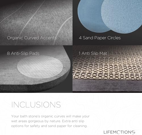 Effortless Cleaning and Maintenance: Crafted from naturally durable minerals, this bath mat stone is exceptionally easy to keep clean. Simply wipe away stains with a damp cloth or utilize the included sanding tool. Over time, you can restore and improve its absorbency by lightly sanding the surface.