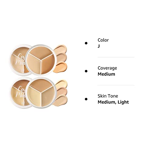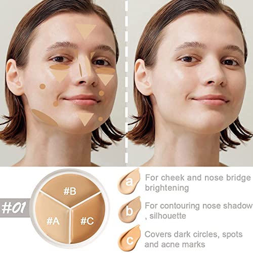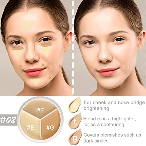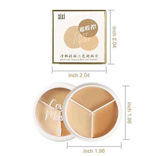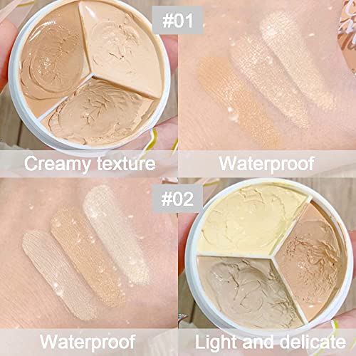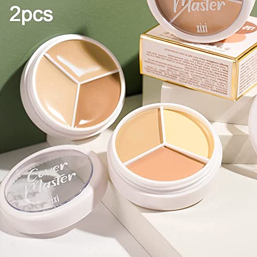 Pro 2pcs Tri-color Face Concealer Contour Palette.Demi Beige Color Correct Cream Foundation Palet.Natural Ivory Cream Makeup Plate Waterproof