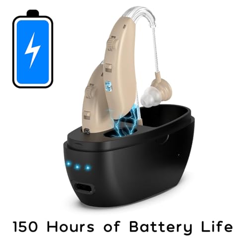 Extended Battery Life: Enjoy up to 30 hours of pristine audio on a single charge, complemented by a portable charging case that delivers an additional 150 hours of power, ensuring your hearing aids are always ready when you are.