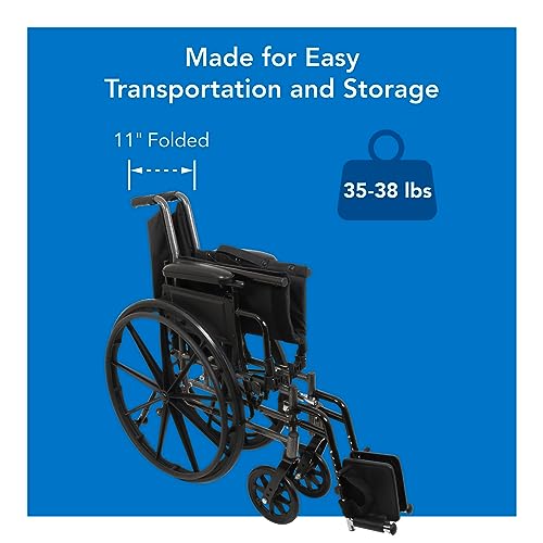 ProBasics Lightweight Wheelchair for Adults – Flip Back Height Adjustable Desk Arms with Elevating Leg Rest – 16″ x 16″ Seat