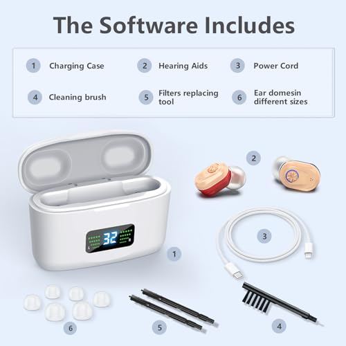 【Thoughtful Accessories】The hearing aids have three different sizes of earplugs for people of all stages of age and different ear canal shapes, which are not easy to fall off and fit your ear canal more perfectly. It is also equipped with a cleaning brush and two speaker filters, which can be effectively replaced to clean your hearing aids and prevent clogging due to dirt.