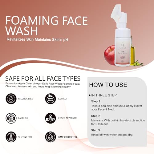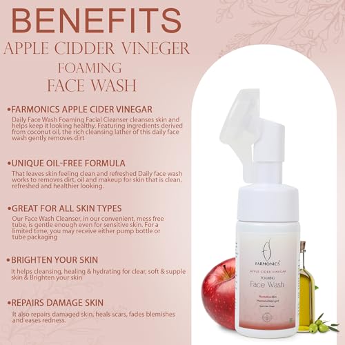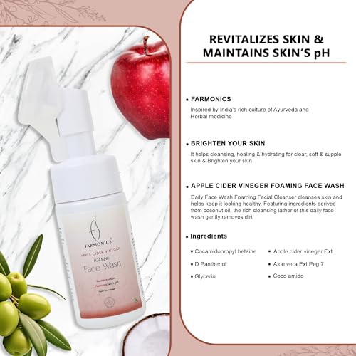 Farmonics Purifying Apple Cider Vinegar Face Wash | Ayurveda Acne Formula Daily Facial Cleanser | Supports Pore Deep Cleansing | Foaming, Hydrating, Moisturizing Face Wash