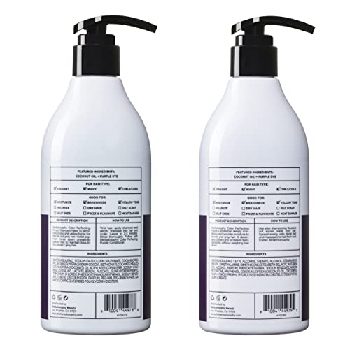 Purple Shampoo & Conditioner Set, Toning Shampoo Conditioner for Blonde Gray Hair, Eliminates Brassy and Yellow Tones, Infused with Cocos Nucifera Oil, Free of Sulfate, Parabens and Gluten, 2 x 16.9 Fl Oz