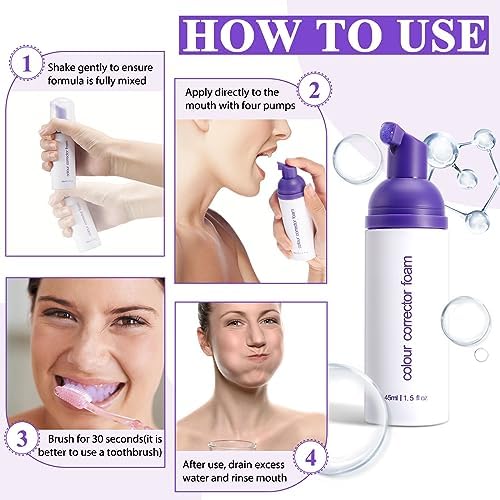 Excellent Whitening Effect: Purple whitening foam toothpaste effectively reduces tooth pigmentation through color correction technology. Natural extracts of purple dye effectively remove yellow or dull appearance from teeth, making them appear brighter and whiter.