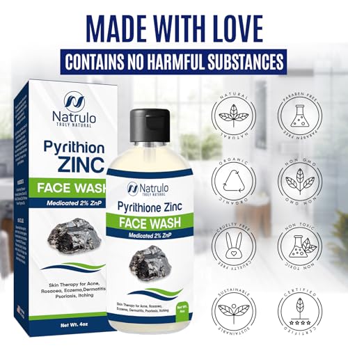 Pyrithione Zinc Face Wash | 2% ZnP Zinc Soap Skin Therapy Body Cleanser for Acne, Rosacea, Eczema, Dermatitis, Psoriasis, Itching | Cleansing, Calming Facial Wash | Zinc Face & Body Wash Made in USA