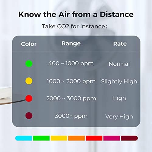 【High-resolution Touch Screen】The 3.1” IPS touch screen with 328 PPI is ultra-clear. The brightness can be adjusted automatically. Each metric is with a color indicator under the number, so you can understand the indoor air quality and the temperature/humidity level of your room at a glance. You can touch the numbers or slide to switch the interfaces, all the operations are smooth and easy.