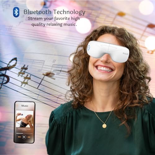Eye Massager with Heat, Smart Heated Eye Mask with Bluetooth Music and vibration helps Migraine, Face Massager to Use Before Sleep and Post-Work/Study/Driving for Eye Relaxation. Eye Care Device for Eye Strain, Dry Eyes, Eye bags, Migraines. Foldable, Perfect Birthday Gift, Fathers Day Gift and Just Because Gift.