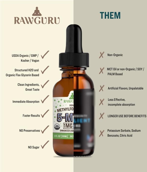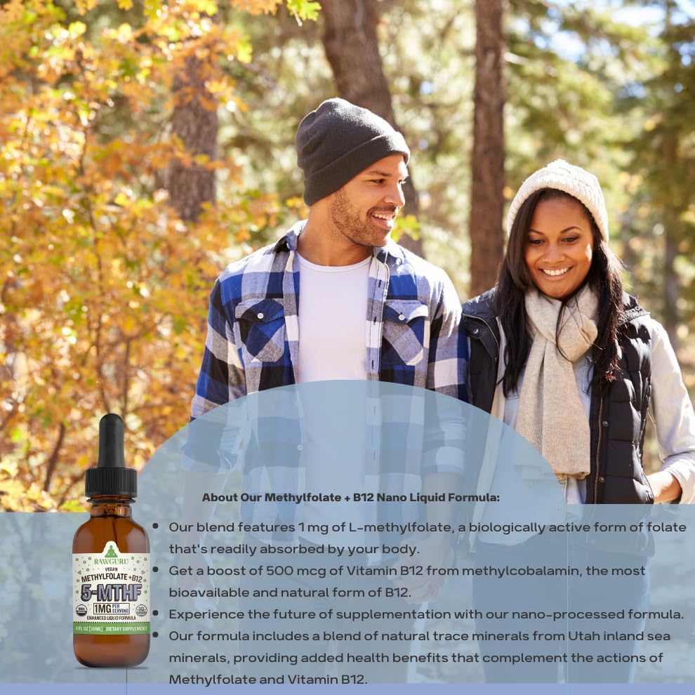 RawGuru Organic Methylfolate 1mg + B12 Complex – Cognitive Support and Immunity Boost Tincture – 30 ml. Vegan Drops