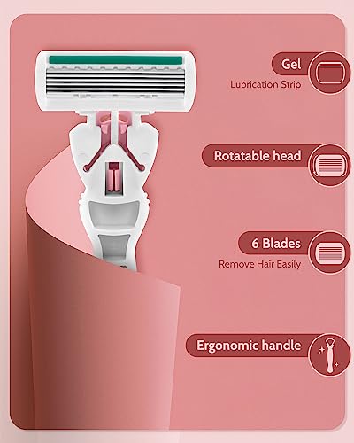 PORTABLE: the size of disposable razors women 6 blades is 5.9 inches, weight is 0.56 oz; small and light ladies razors for legs, which is a great choice to be as your travel razor
