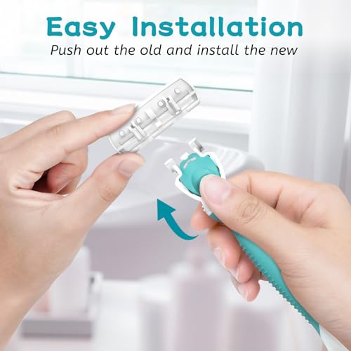 EASY TO REPLACE: When replacing the razor head, hold the head avoiding the blade position and press the button while holding the blade facing down. To install, insert the handle into the back of the head until it clicks into place, then remove the protective cap.