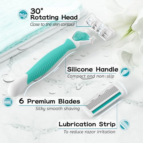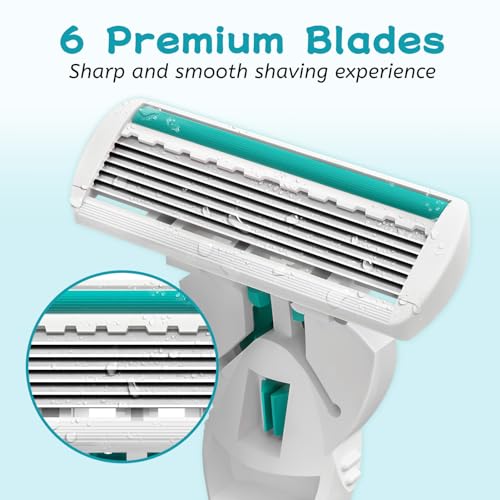 6 PREMIUM BLADES: The women’s razor is designed with 6 blades for sharper shaving. Meanwhile, you can shave close to the skin, easily remove unwanted hairs, not easy to cut the skin and produce bumps, no need to shave repeatedly.