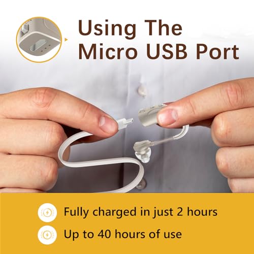 【COMFORTABLE TO WEAR】-Made from lightweight materials, the rechargeable hearing aids for seniors are extremely lightweight and easy to wear and carry. Ergonomic shape design fits the curve of the ear without causing pressure or discomfort on the auricle ensures comfort and stability when wearing. allowing wear it for a long time without discomfort.