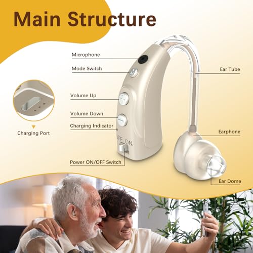 Rechargeable Hearing Aid for Seniors, Delmicure Digital Hearing Amplifier for Adults with 4 Frequency Modes & 8-Level Volume Adjustment, Clear Sound Quality